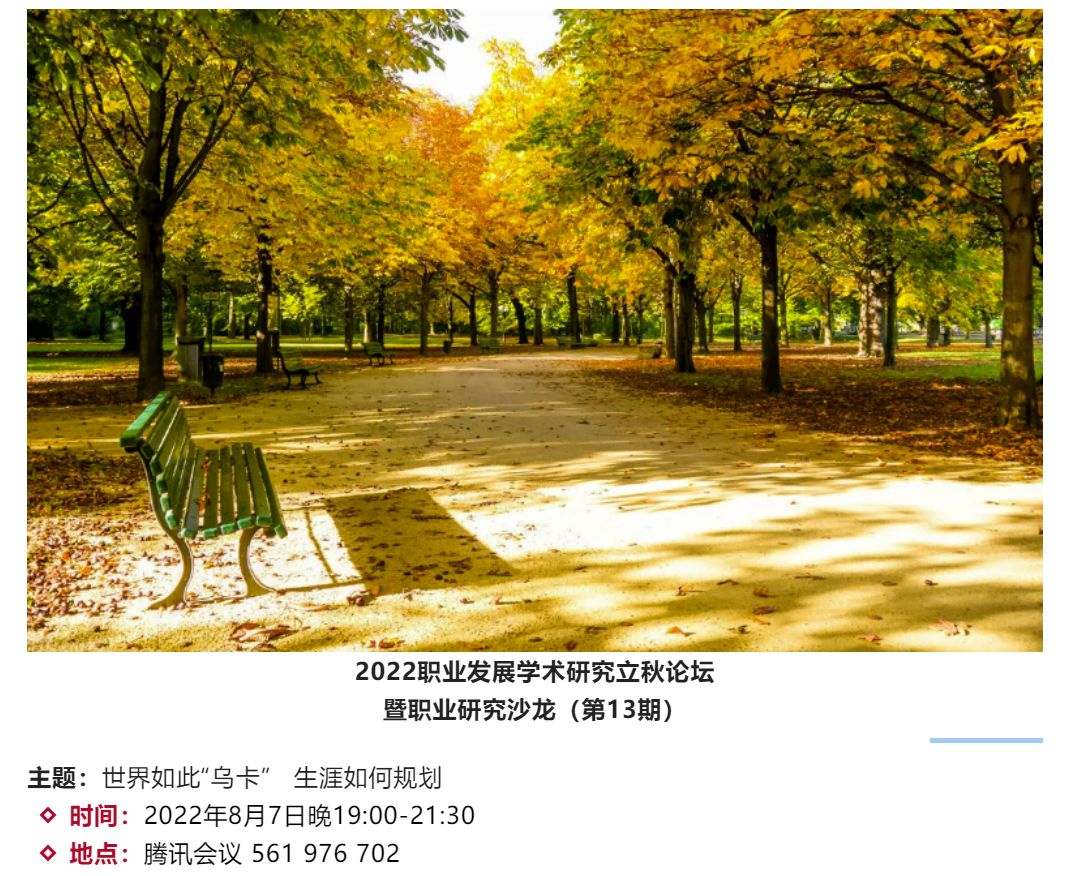 硬硬av 职业开发与管理系、劳动经济学会职业开发与管理分会和硬硬av 组织行为学研究所主办的2022年职业发展学术研究立秋论坛暨职业研究沙龙(第13期)于2022年8月7日(星期日)晚上19:00至21:30借助腾讯会议的线上途径顺利开展。