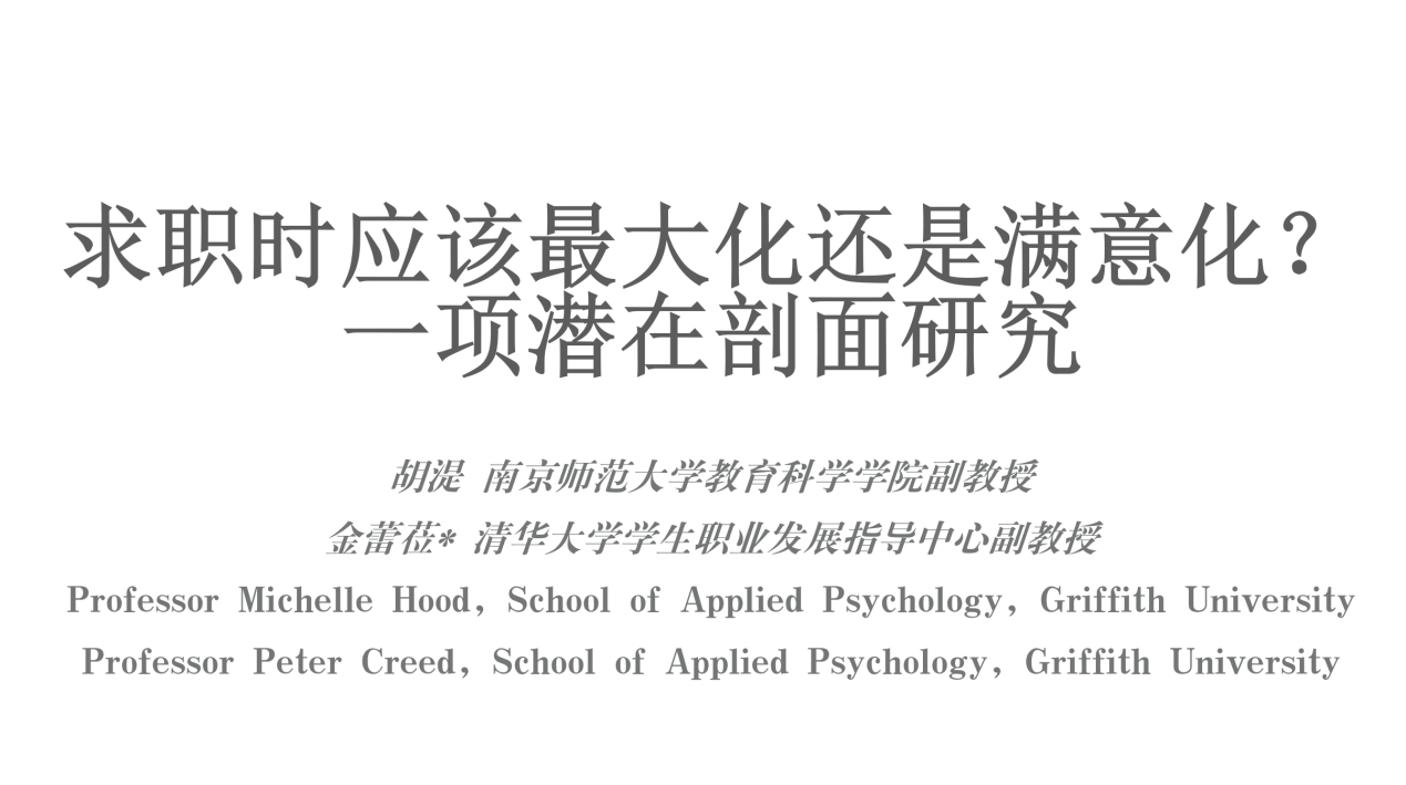 胡湜和金蕾莅老师的报告主题为“求职时应该最大化还是满意化”。两位老师从“最大化求职者”的困境这一现实问题出发,对最大化求职、满意化求职、适应性最大化以及适应性满意化四类求职策略进行了分析,并以双一流高校学生为样本,得出了不同求职策略的人数比例和他们在获得录用函数量、结果满意度和后悔度等重要求职结果上的显著差异。其后,两位老师分别从理论和实践角度分享了研究发现在理论和实践上的启示。于坤老师围绕最大化求职策略的定义,职位搜寻与职位筛选心理机制的分析等方面进行了讨论。