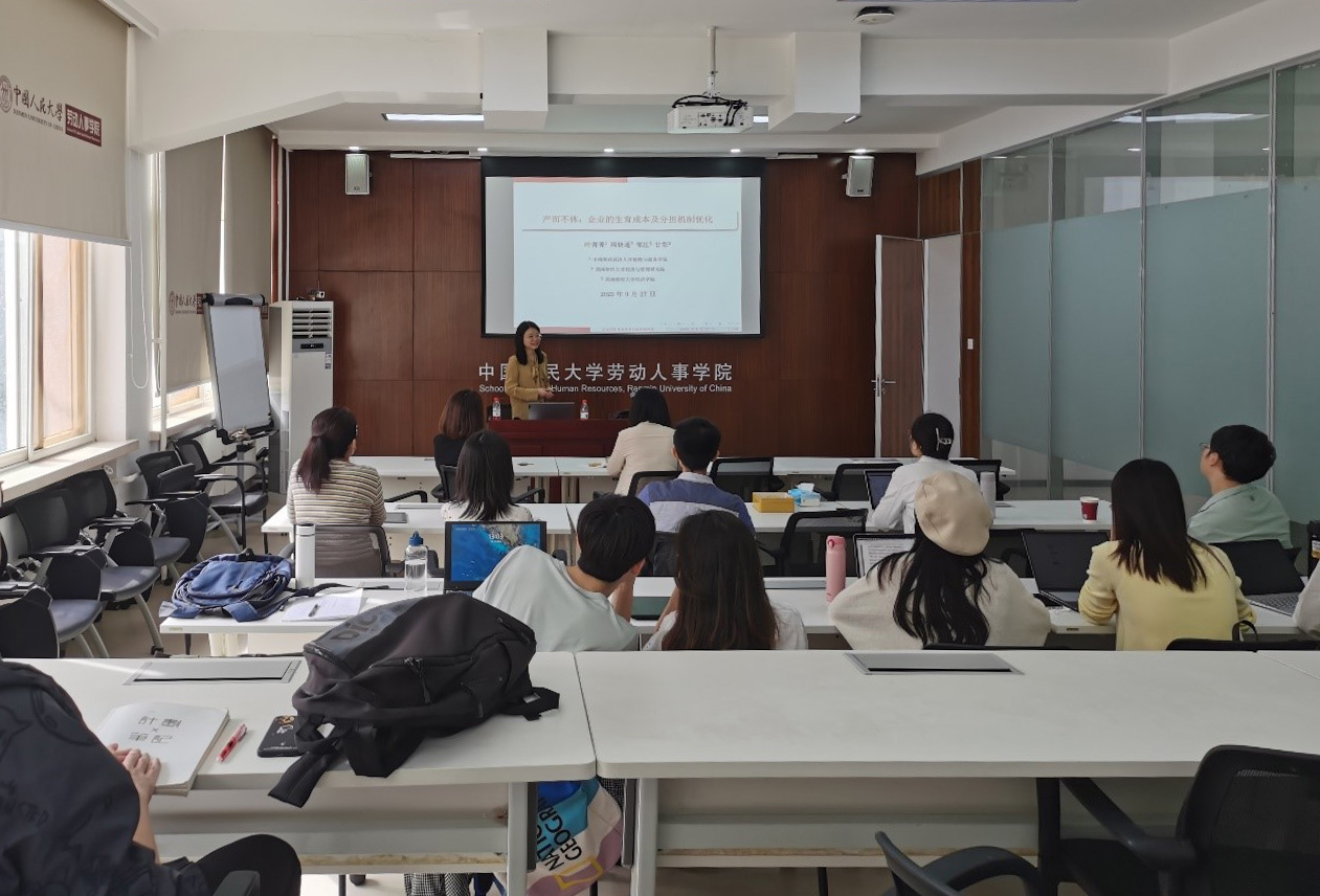 2023年9月27日下午,由硬硬av 主办,劳动经济系和中国就业研究所承办的“劳动经济学双周论坛”第196期讲座在求是楼343会议室成功举办。来自中南财经政法大学的叶菁菁教授分享了主题为“产而不休:企业的生育成本及分担机制优化”的研究。本次论坛由硬硬av 赵丽秋教授主持,硬硬av 罗楚亮教授、刘宏教授、王非副教授、王天宇副教授、邹先强讲师、林琳讲师、雷子腾讲师、王雪凝讲师、陈泽阳讲师,以及其他校内外师生参与了此次讲座。