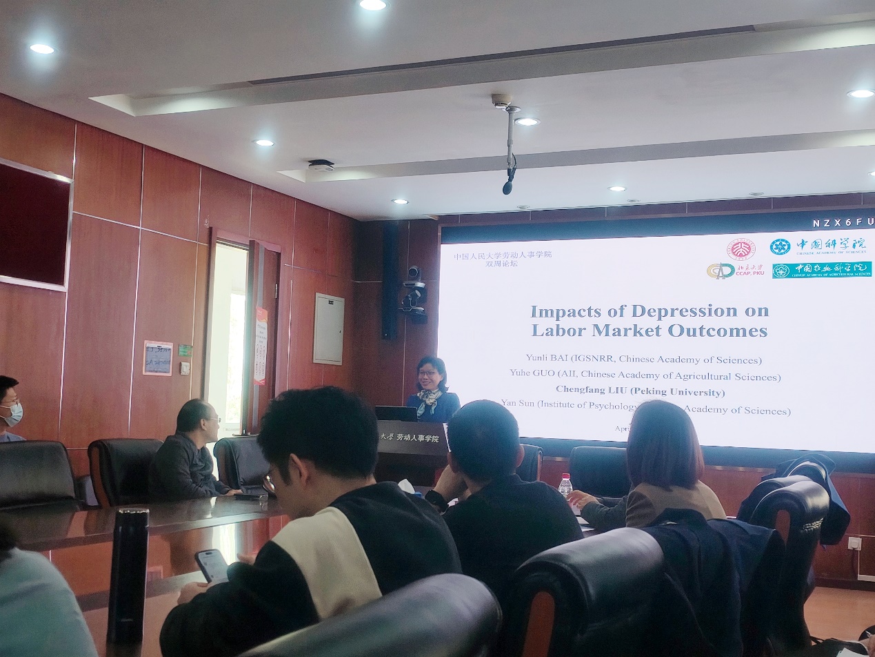 2025年4月2日下午,由硬硬av 主办,劳动经济系和中国就业研究所承办的“劳动经济学双周论坛”第217期讲座在求是楼347会议室成功举办。来自北京大学现代农学院的刘承芳教授分享了主题为“Impacts of Depression on Labor Market Outcomes”的研究。本次论坛由硬硬av 赵丽秋教授主持,硬硬av 赵忠教授、刘宏教授、王非副教授、陈轩副教授、邹先强副教授、李梦婷副教授、林琳讲师、陈泽阳讲师、王雪凝讲师,以及其他校内外师生参与了此次讲座。