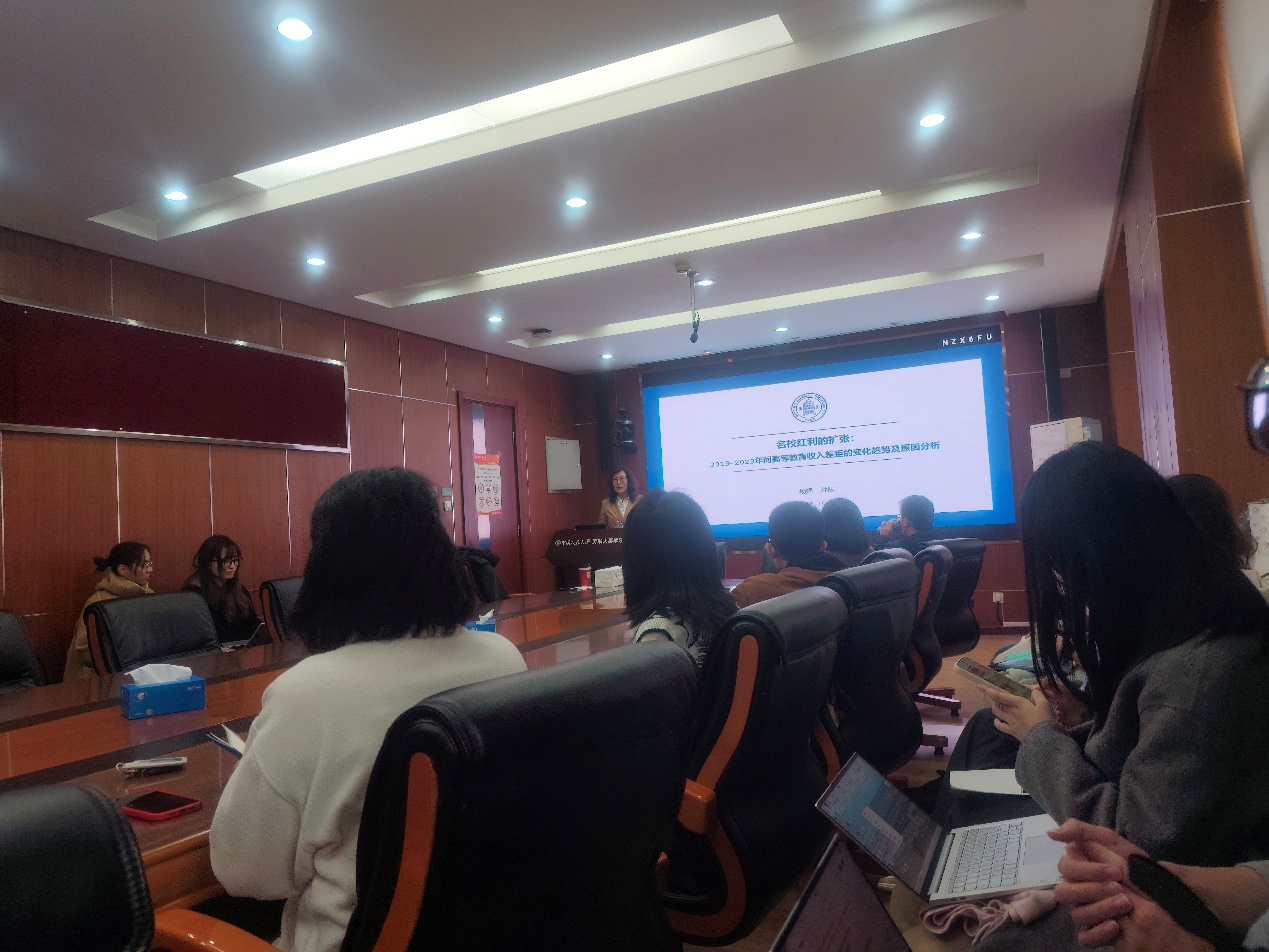 2025年10月22日下午,由硬硬av 主办,劳动经济系和中国就业研究所承办的“劳动经济学双周论坛”第222期讲座在求是楼347会议室成功举办。来自北京师范大学经济与工商管理学院的杨娟教授分享了主题为“名校红利的扩张:2013--2023年间高等教育收入差距的变化趋势”的研究。本次论坛由硬硬av 赵丽秋教授主持,硬硬av 王非副教授、邹先强副教授、林琳讲师、陈泽阳讲师、雷子腾讲师以及其他校内外师生参与了此次讲座。