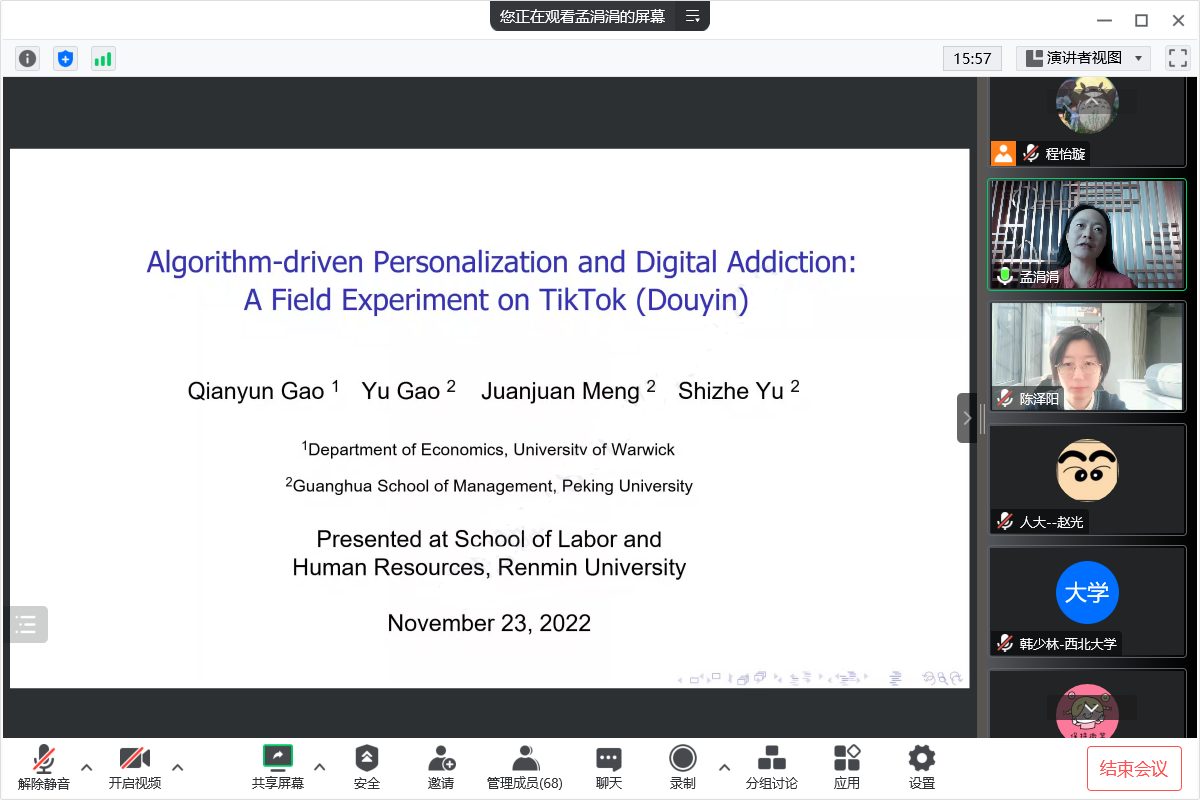 2022.12.08劳动经济学双周学术论坛第178期讲座成功举办
