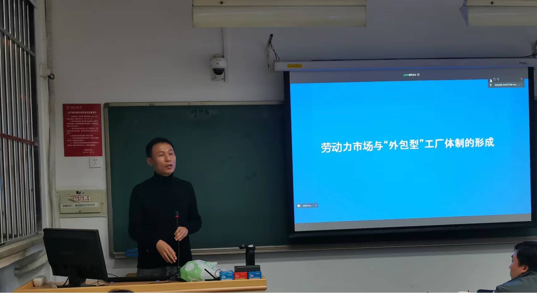 由硬硬av 主办,劳动关系系承办的“劳关天下”系列讲座于2023年3月8日(星期三)下午6点半,通过线下、线上相结合的方式成功举办。来自华中师范大学的郑广怀老师进行了题为“劳动力市场与‘外包型’工厂体制的形成”的学术分享。本次学术讲座由硬硬av 劳动关系系汪建华老师主持,来自国内不同高校科研院所共一百余位学者、学生和实务界人士在现场和线上参与了此次讲座。