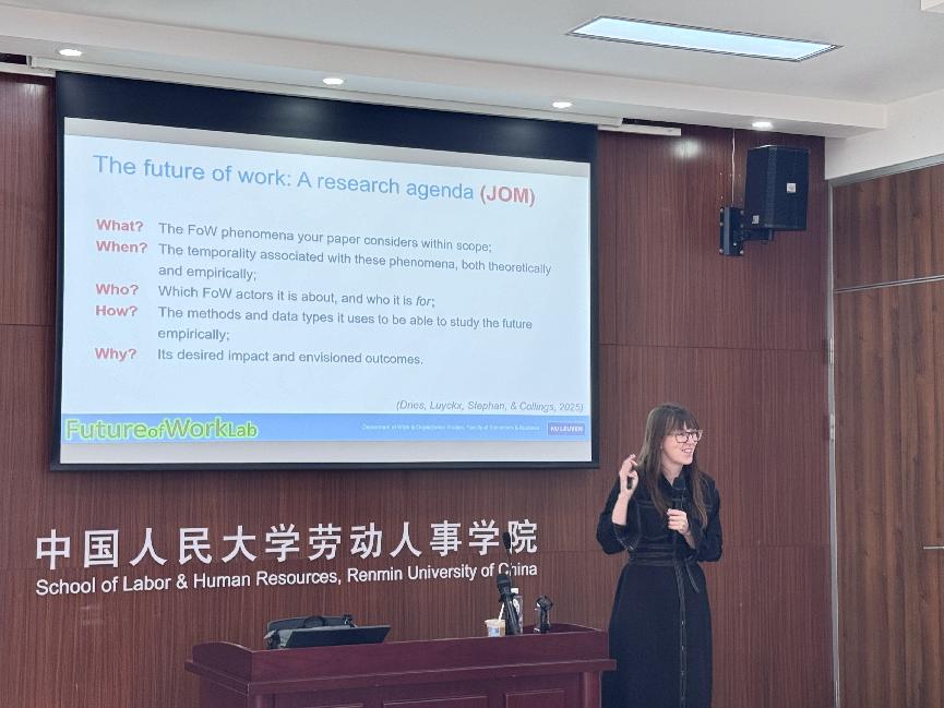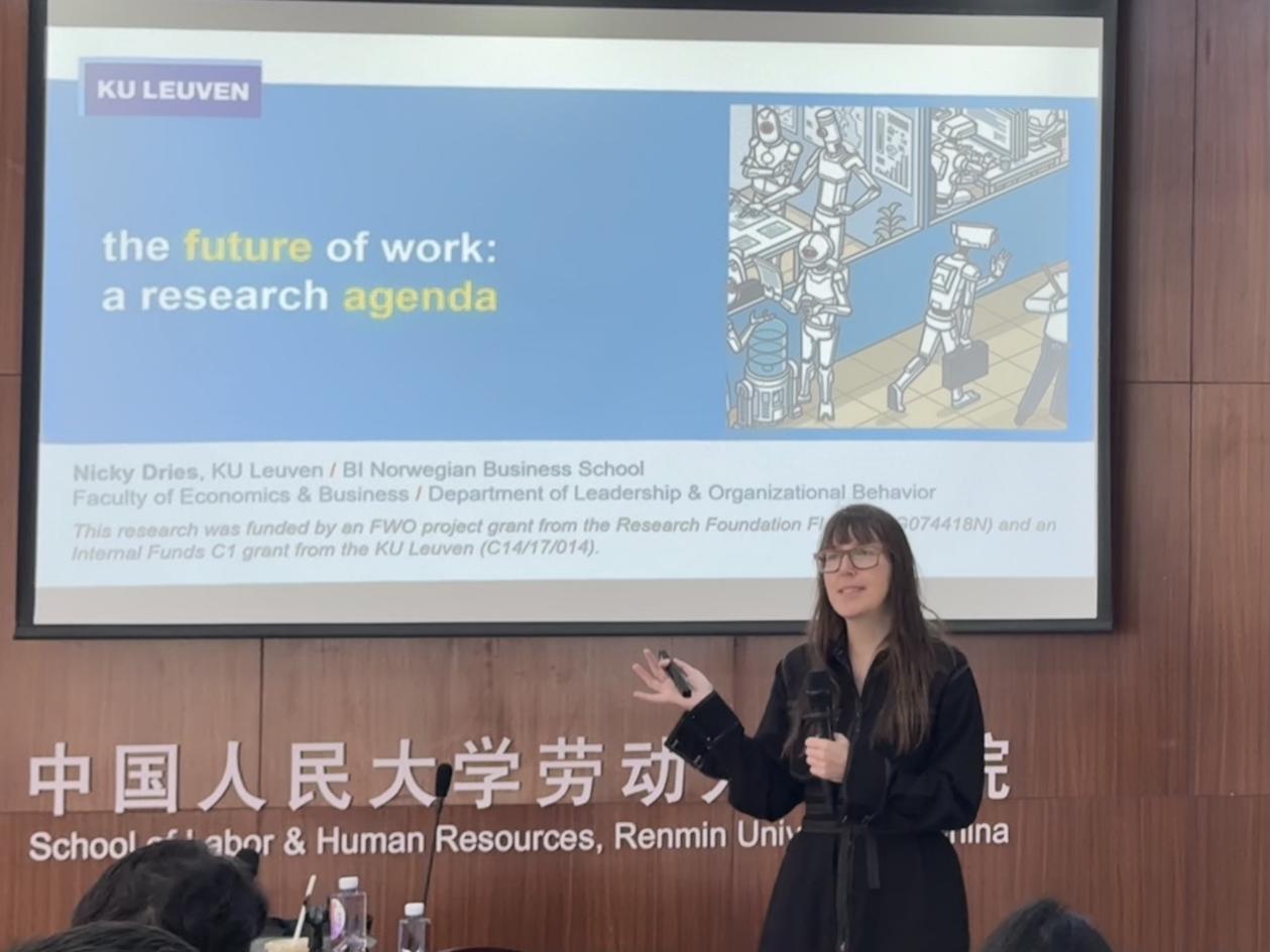 2025年4月1日上午,硬硬av 在求是楼343会议室成功举办了“人力资源管理系2025年春季学期半月谈”学术论坛第127期讲座。来自比利时鲁汶大学工作与组织研究系和挪威BI商学院领导力与组织行为系的Nicky Dries教授作题为“工作的未来:一项研究议程”的讲座,为与会者详细介绍并系统梳理了有关“Future of Work”这一前沿议题未来的研究方向。讲座由陈雯老师主持,魏昕教授、骆南峰副教授、赵锴副教授、李海蓉副教授、金秋萍老师、毛凯贤老师等学院教师,来自硬硬av 、商学院以及外校共四十余位师生积极参与本次讲座。