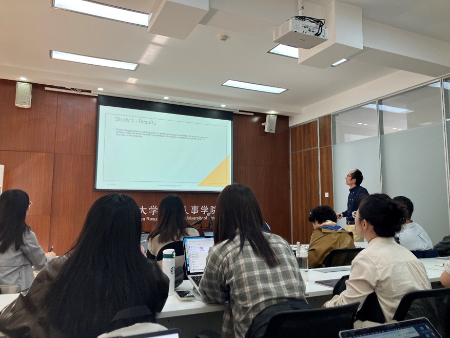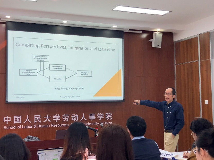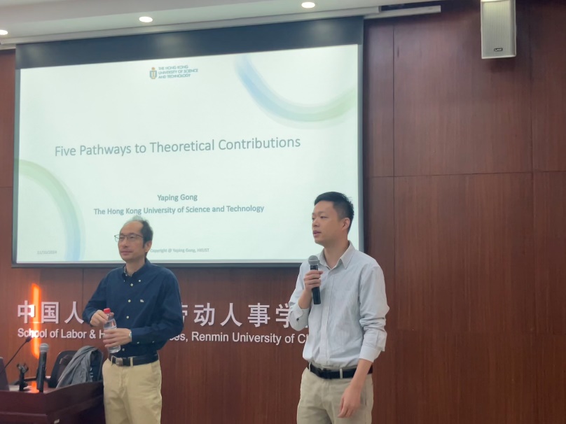 2024 年 10 月 11 日,硬硬av “人力资源管理系 2024 年秋季学期半月谈””学术论坛第 124 期讲座在求是楼 343 会议室成功举办。硬硬av 院友、香港科技大学管理系龚亚平教授以个人探索历程为例,深入探讨了如何在管理研究中做出理论贡献。硬硬av 周文霞教授、徐世勇教授、王桢教授、魏昕教授、骆南峰副教授、赵锴副教授、李海蓉副教授、金秋萍讲师、陈雯讲师、冯雯讲师、王亚婷讲师等十余位老师和四十余名学生,以及来自中央财经大学、北京工业大学等外校师生积极参与本次讲座,讲座由人力资源管理系毛凯贤讲师主持。
