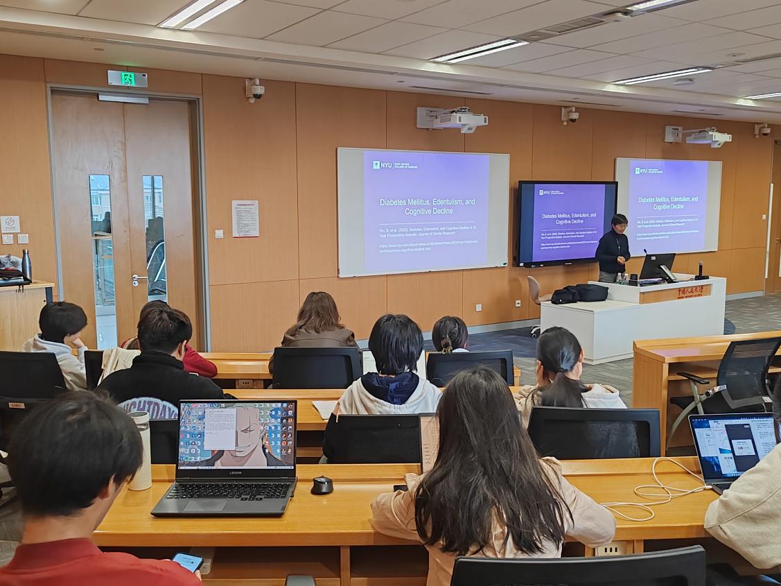 在讨论问答环节,参会师生就老年人口腔健康这一议题进行了积极分享与热烈讨论。最后,全体参会人员对吴蓓教授的精彩分享表示由衷的感谢。