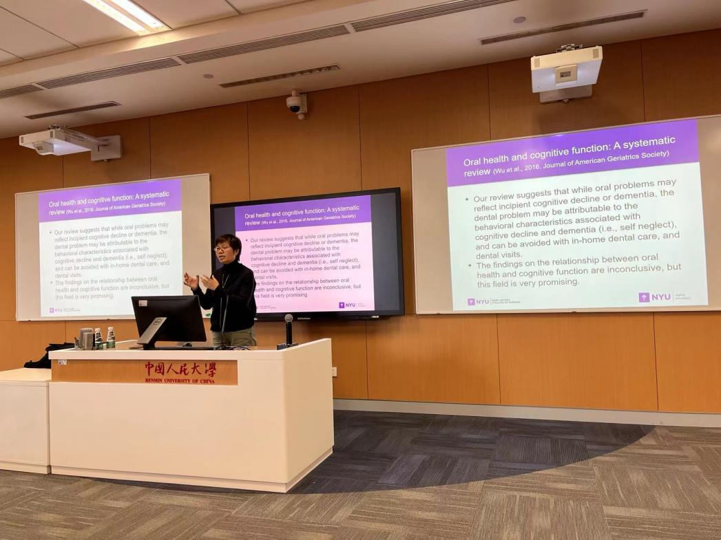 2023年11月4日上午,硬硬av 通识讲座硬硬av 社会保障半月谈第72期讲座在立德楼410会议室成功举办。来自纽约大学的吴蓓教授分享了主题为“Oral Health: An Essential Element of Healthy Aging”的研究。本次论坛由硬硬av 李梦婷讲师主持,来自硬硬av 、社会与人口学院、经济学院、统计学院、法学院、外国语学院、信息资源管理学院、明德书院等四十余名师生参加了此次活动。