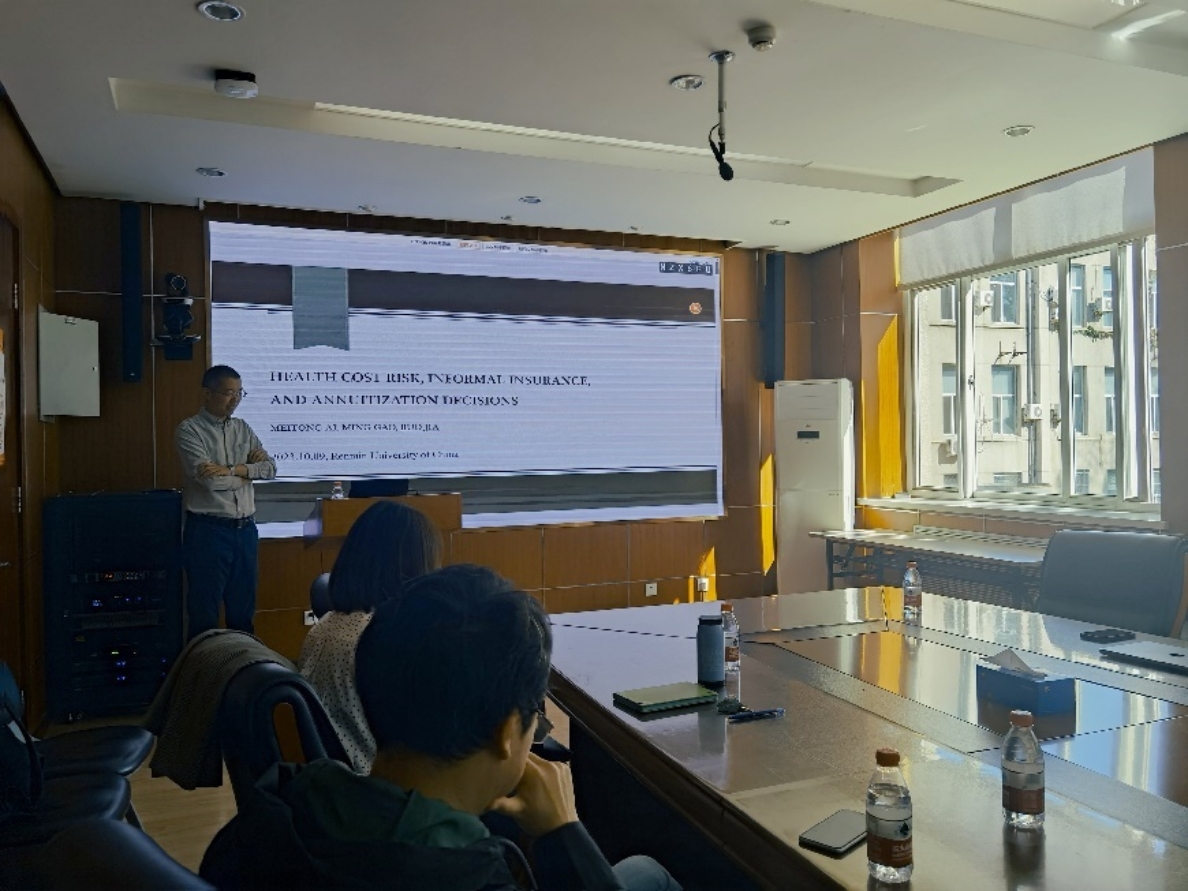 硬硬av 社会保障半月谈第70期于2023年10月9日(星期一)上午10:00至11:30在求是楼347会议室成功举行。北京大学经济学院贾若副教授(长聘)进行了题为“Health cost risk, informal insurance, and annuitization decisions”的分享。本次学术讲座由硬硬av 社会保障系刘宏教授主持,王天宇副教授、刘凯副教授、雷子腾讲师等学者以及其他校内外师生参加了此次活动。
