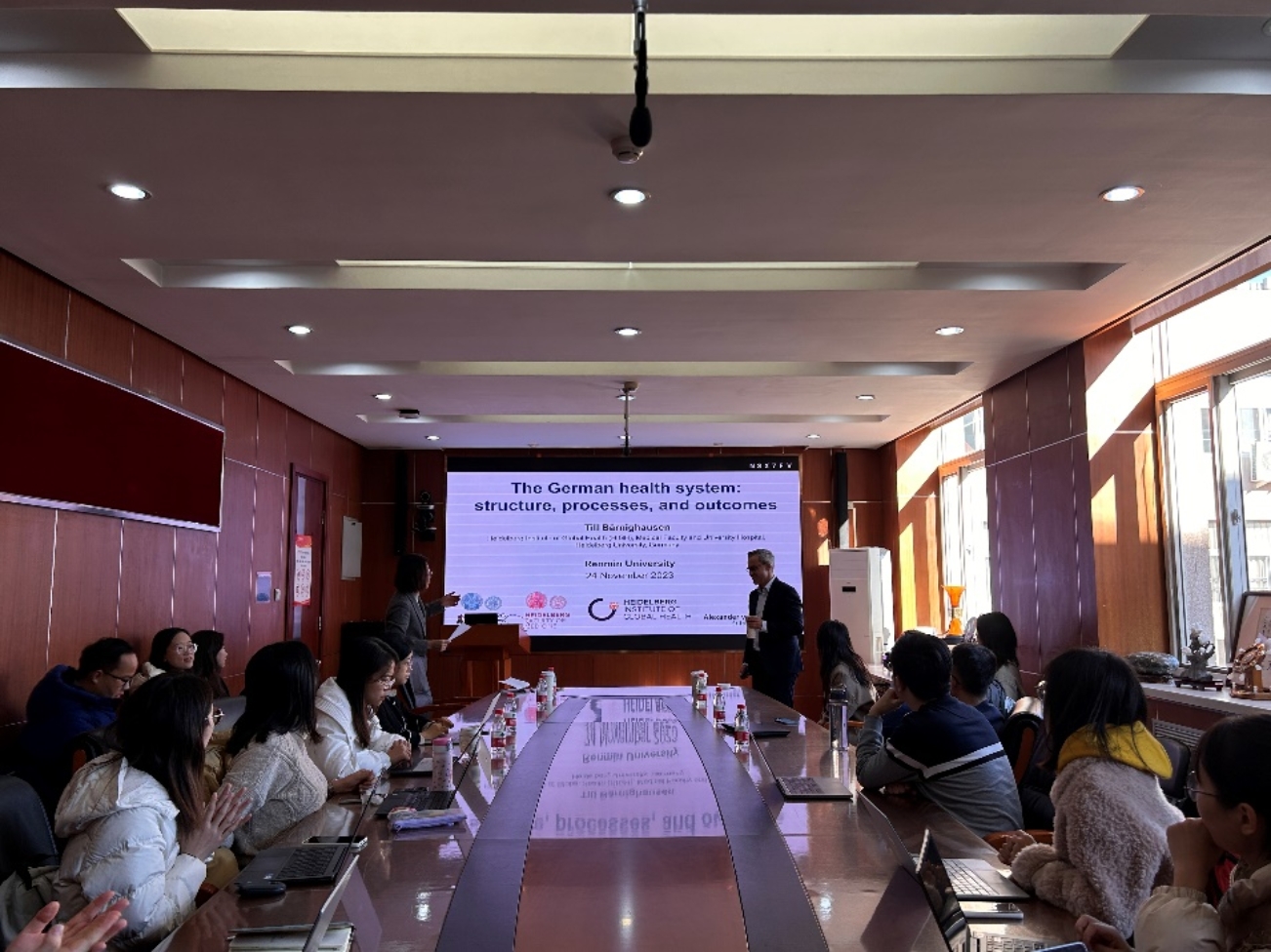 在讲座过程中以及讨论环节,参会师生就儿童参保机制、非正规就业人员缴费标准确定、防范道德风险举措、支付方式改革实践、全科医生待遇等方面问题进行了探讨。最后,参会师生对Till Bärnighausen教授的精彩分享表示由衷的感谢。